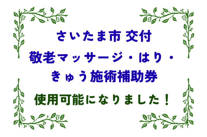 当院は さいたま市の「敬老マッサージ・はり・きゅう施術料補助券」のご利用が出来る施設となりました!